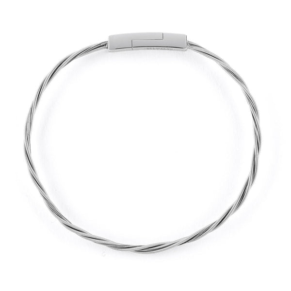 • Crafted with used guitar strings, this bracelet features a stainless steel clasp for a precise fit.