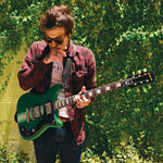 Handcrafted in the USA, this piece of wearable memorabilia features a recycled string donated by the musician listed above.